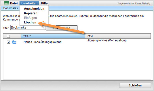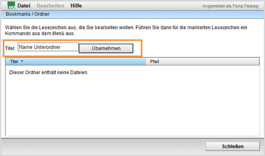 - Vorhandene Lesezeichen können Sie z.B. löschen oder in Unterordnern organisieren.